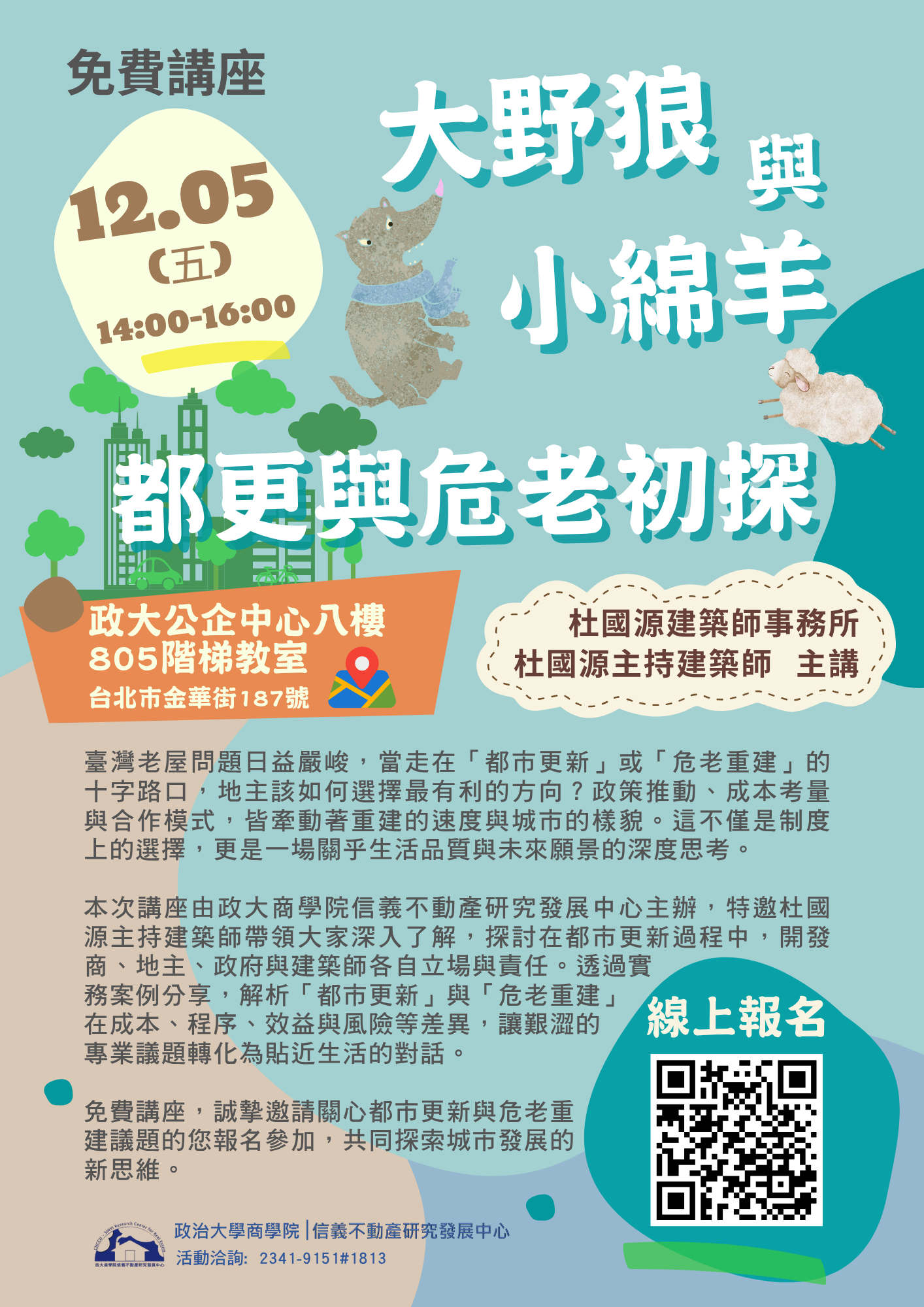 2025講座 | 12/5 (五)【大野狼與小綿羊:都更與危老初探】